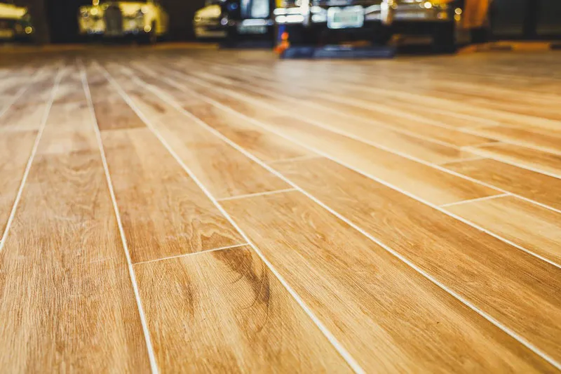 走進主展間,映入眼簾的是以 黃山石經典木紋磚 鋪陳的地坪。